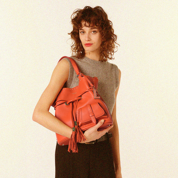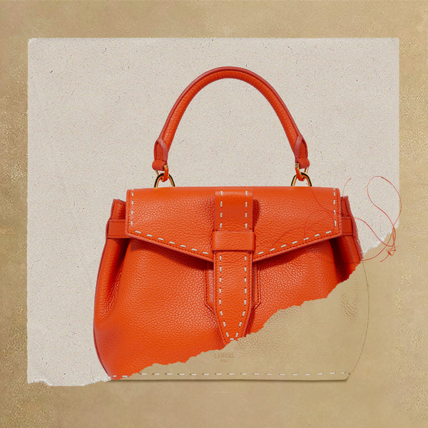 Pour son animation « Maroquinière» , LANCEL a choisi un cuir de vachette grainé souple et généreux, décliné en Noir, Sienne et Orange. Elle l’a ensuite serti de sublimes surpiqûres sellières entièrement réalisées à la main, comme l’exige la tradition du point sellier, initialement destinée aux pièces d’attelage et maîtrisée de longue date par LANCEL.